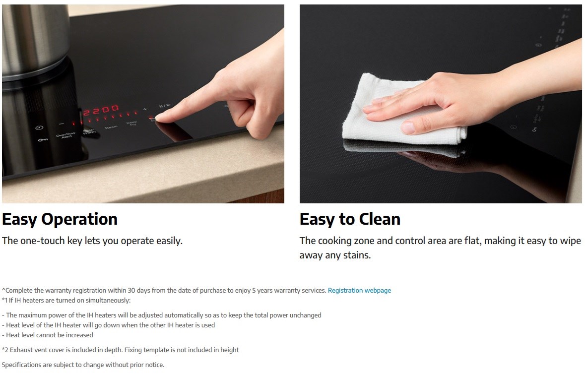 • Independent left & right IH heater (max.) : 2200 W (*1)